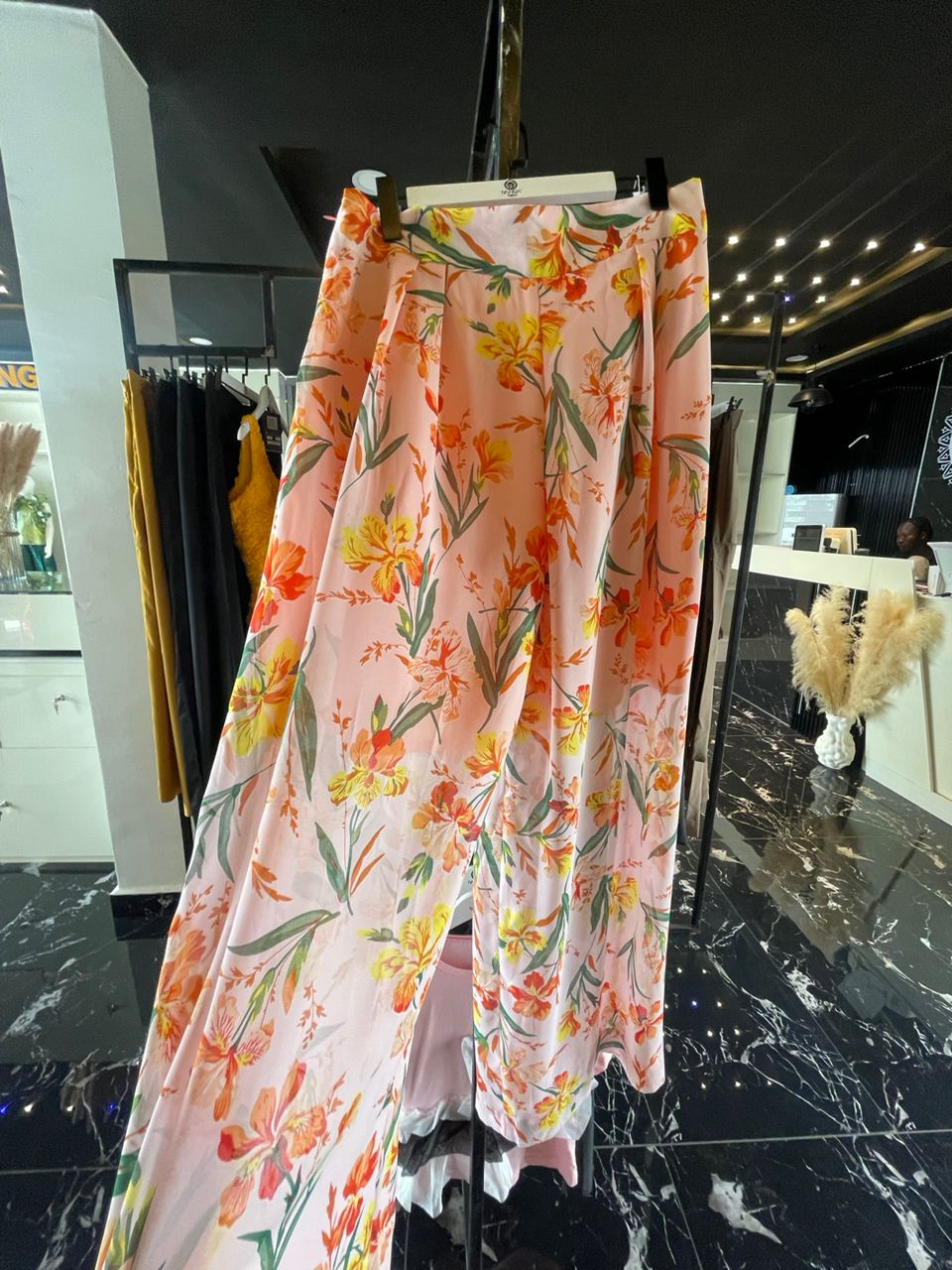 Peach green flowery palazzo
